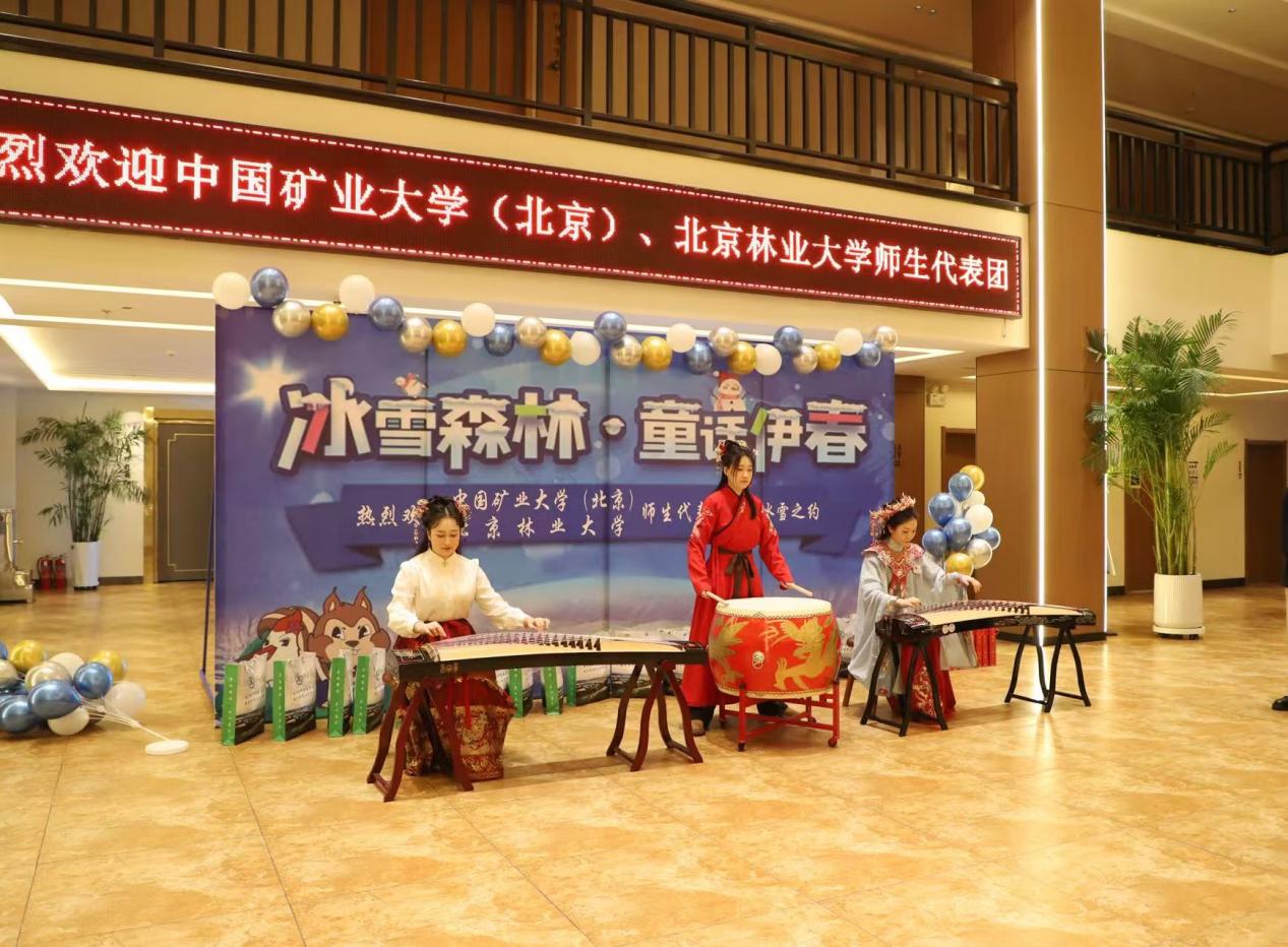 儀式在民樂(lè)演奏《相思遙》中拉開(kāi)序幕,韓殿君分別為中國(guó)礦業(yè)大學(xué)(北京)和北京林業(yè)大學(xué)的師生代表團(tuán)佩戴紅色圍巾,并表達(dá)對(duì)兩所高校的熱烈歡迎,王鳳華為師生們送上文創(chuàng)禮物,劉子君送上伊春市文藝志愿者協(xié)會(huì)為大家書(shū)寫(xiě)的書(shū)法作品,每一份禮物都承載著對(duì)兩所高校師生的深情厚誼和美好祝愿。希望此次活動(dòng)能以冰雪旅游為紐帶,在人才培養(yǎng)、文化交流等多領(lǐng)域開(kāi)展深入合作,實(shí)現(xiàn)優(yōu)勢(shì)互補(bǔ)、共同進(jìn)步,并誠(chéng)邀更多師生深入體驗(yàn),助力伊春文旅推廣。