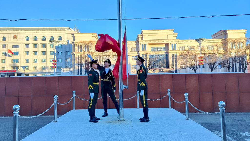 7時整,國旗護(hù)衛(wèi)隊(duì)隊(duì)員們邁著鏗鏘有力的步伐,護(hù)衛(wèi)著五星紅旗。他們身姿挺拔,眼神堅(jiān)定,展現(xiàn)出了青年一代的昂揚(yáng)風(fēng)貌。當(dāng)雄壯的國歌奏響,鮮艷的五星紅旗迎著朝陽冉冉升起。全體師生行注目禮,高唱國歌,心中滿是對祖國的熱愛與崇敬之情。教師代表劉萬春和學(xué)生代表赫美玉分別在國旗下激情洋溢地發(fā)言。