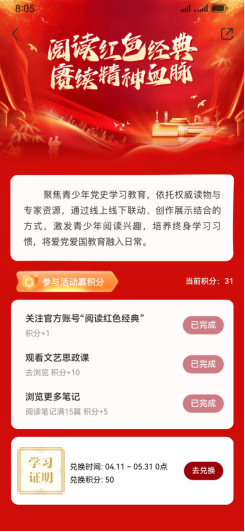 此次活動(dòng)以“閱讀紅色經(jīng)典”為核心,通過(guò)小紅書線上打卡、讀書分享、互動(dòng)交流等形式,打破時(shí)間與空間的限制,讓紅色經(jīng)典閱讀融入學(xué)生的日常生活。同學(xué)們紛紛在小紅書閱讀學(xué)習(xí),用生動(dòng)的方式展現(xiàn)自己對(duì)黨史的理解與感悟。