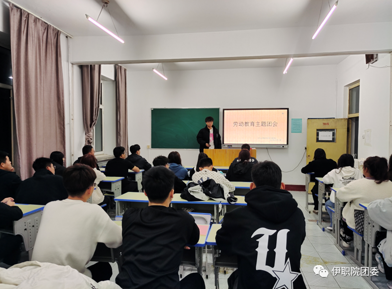 各二級學(xué)院同時相繼開展了主題班會,旨在幫助學(xué)生樹立正確的勞動觀,讓勞動成為伊職學(xué)子的生活方式,同時牢固樹立“勞動最光榮、勞動最崇高、勞動最偉大、勞動最美麗”的觀念。團(tuán)日活動中,通過講解PPT的形式帶領(lǐng)同學(xué)們了解了勞動與青春的聯(lián)系。