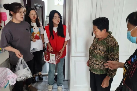 在食堂工作人員的協(xié)助下,粽子煮熟,粽香撲鼻,看到分好的一份份粽子,每個人臉上都洋溢著幸福的笑容。當(dāng)日下午,伊春職業(yè)學(xué)院馬永順志愿服務(wù)隊師生代表與團(tuán)市委機關(guān)黨員干部代表一同深入奮斗社區(qū),相繼走訪小區(qū)的困境家庭,將煮好的粽子和準(zhǔn)備好的雞蛋送到他們手中,親切的詢問他們的生活和身體狀況,為他們送去端午節(jié)日的問候。