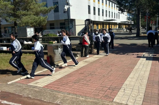 默哀結(jié)束后,大一師生進(jìn)行了國防疏散演練,大家迅速而有序地從教學(xué)樓撤離,按照預(yù)定路線集結(jié)到安全地帶。