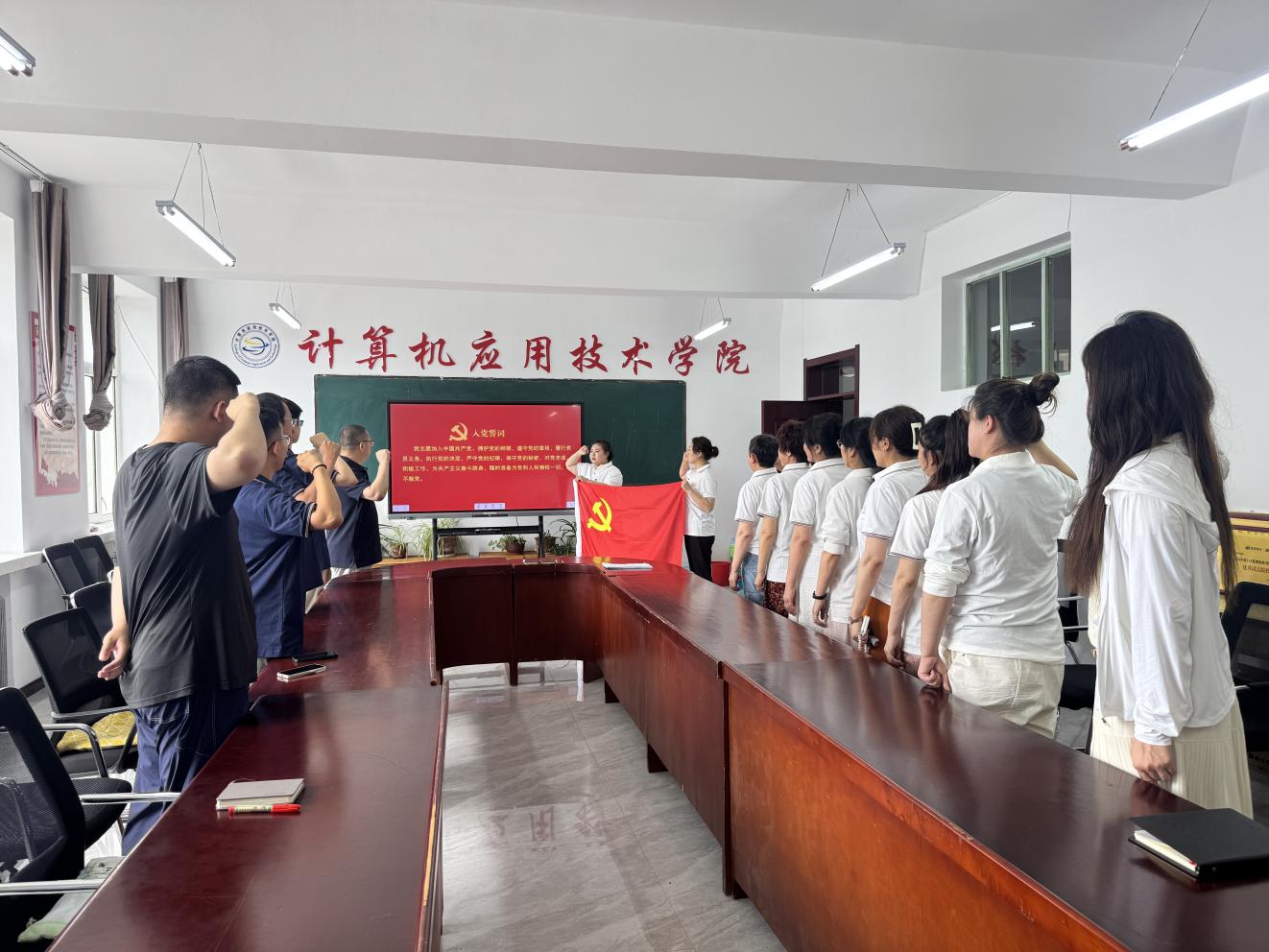 7月1日,我院組織全體黨員在314會議室開展“七一”主題黨日活動?;顒佑芍販厝朦h誓詞、黨章黨紀知識競賽、同唱一首歌《沒有共產(chǎn)黨就沒有新中國》三項內(nèi)容組成。