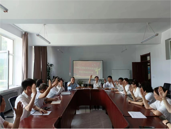 隨后,新一屆計算機應用技術學院黨支部委員會召開第一次全體會議,選舉王洪錦同志為計算機應用技術學院黨支部書記,馬良同志為副書記,劉闖同志為組織委員,王洋同志為宣傳委員,姜玉梅同志為紀檢委員。