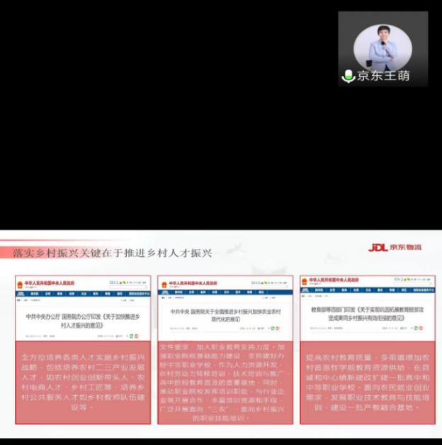 線上交流會上,京東物流負(fù)責(zé)人介紹了公司相關(guān)情況,京東物流作為上市公司是中國領(lǐng)先的技術(shù)驅(qū)動的供應(yīng)鏈解決方案及物流服務(wù)商,服務(wù)范圍覆蓋了中國幾乎所有地區(qū)、城鎮(zhèn)和人口,對我院電子商務(wù)專業(yè)人才的需求量十分大。