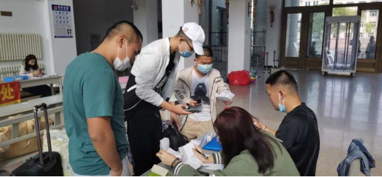 學(xué)院在學(xué)校北門接待學(xué)生,經(jīng)過消毒、體溫檢測后,按照引導(dǎo)路線步行進入校園報到點,并查驗學(xué)生的健康碼和7日內(nèi)核酸檢測報告。