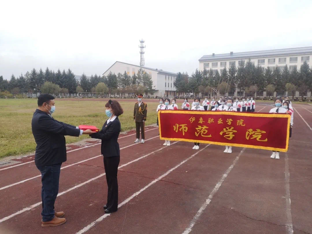 當(dāng)天下午5時,師范學(xué)院和工程學(xué)院在降旗后還舉行了交接儀式。