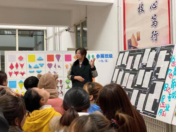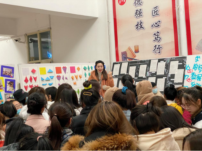 2020年11月12日晚,師范學(xué)院職業(yè)教育周活動(dòng)在教學(xué)主樓一樓大廳啟動(dòng),本次活動(dòng)重點(diǎn)展示了我院學(xué)前教育專業(yè)師生近一年來(lái)的部分教學(xué)成果,包括幼兒折紙、幼兒教師書寫、幼兒美工、環(huán)創(chuàng)等技能作品?;顒?dòng)由師范學(xué)院王紅、邱微微老師組織,在校生近二百人參加。任課教師鄭璇、李恩翠、馬金鳳一一向在場(chǎng)同學(xué),尤其是學(xué)前教育、早期教育的新同學(xué)們,介紹了優(yōu)秀作品、相關(guān)課程內(nèi)容及專業(yè)技能要求,進(jìn)一步提高了學(xué)生對(duì)所學(xué)專業(yè)的認(rèn)知和對(duì)未來(lái)專業(yè)學(xué)習(xí)的期待。