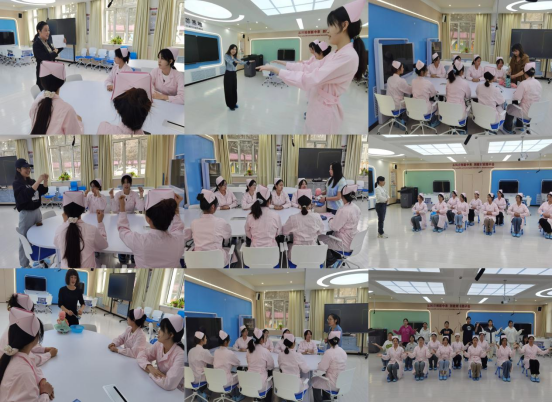 該項工作得到了王海峰院長的大力支持,由學前教研室張丹主任具體負責實施、推進,成立了專業(yè)教師培訓團隊,金鈴玲書記、邱微微副院長、張丹主任與李恩翠、李楠、劉瑾、陳晶銳、羅陽8名骨干教師深入研究考試大綱,并充分利用空課、晚自習和周末的時間對線下83名學生進行實操項目培訓。實操部分采取集體培訓、各班輪訓、技能點輪訓、小組考核、逐個考核的方式,保證學生技能點掌握扎實。理論知識采取小組學習的方式,李楠、李恩翠、馬金鳳、馬金玉、張斯文、李文博、董雯雯、趙爽、韓志穎9名教師每人負責一組學生,每日進行學習打卡,所用方法符合學生學習特點,符合教育教學規(guī)律,為圓滿完成本次證書考試工作打下了堅實基礎(chǔ)。