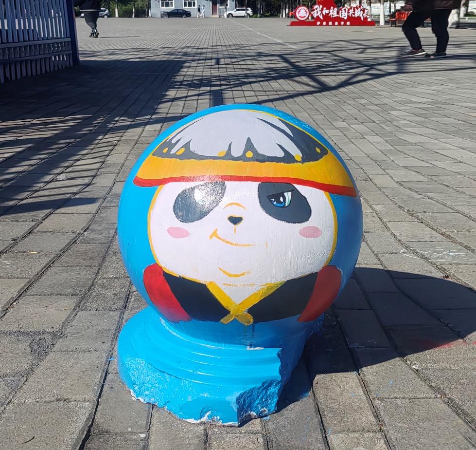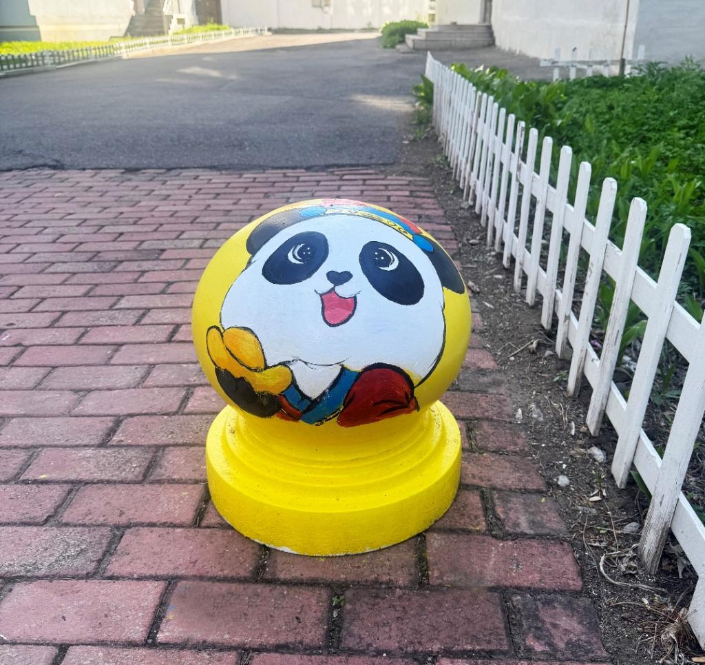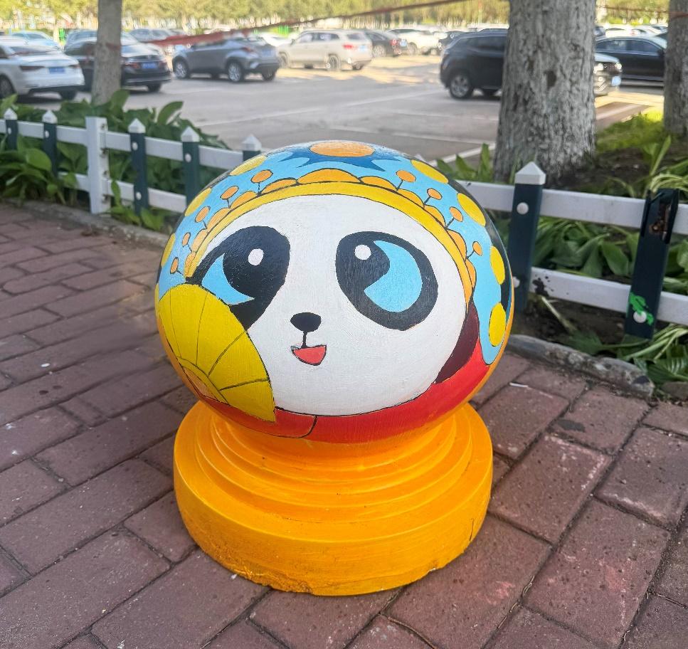 憨態(tài)可掬的熊貓形象躍然于石墩之上,學(xué)生們用畫筆將熊貓的可愛(ài)與靈動(dòng)展現(xiàn)得淋漓盡致。熊貓作為國(guó)寶,深受中國(guó)人民的喜愛(ài),是民族情感的重要寄托。它喚起了人們對(duì)國(guó)家和民族的熱愛(ài)之情,增強(qiáng)了民族自豪感和凝聚力,讓人們?cè)谖幕J(rèn)同和情感共鳴中緊密相連。熊貓的形象承載著深厚的文化底蘊(yùn),如今以手繪的形式裝點(diǎn)校園,讓同學(xué)們?cè)谌粘W(xué)習(xí)生活中,便能感受到傳統(tǒng)文化的親切與美好。