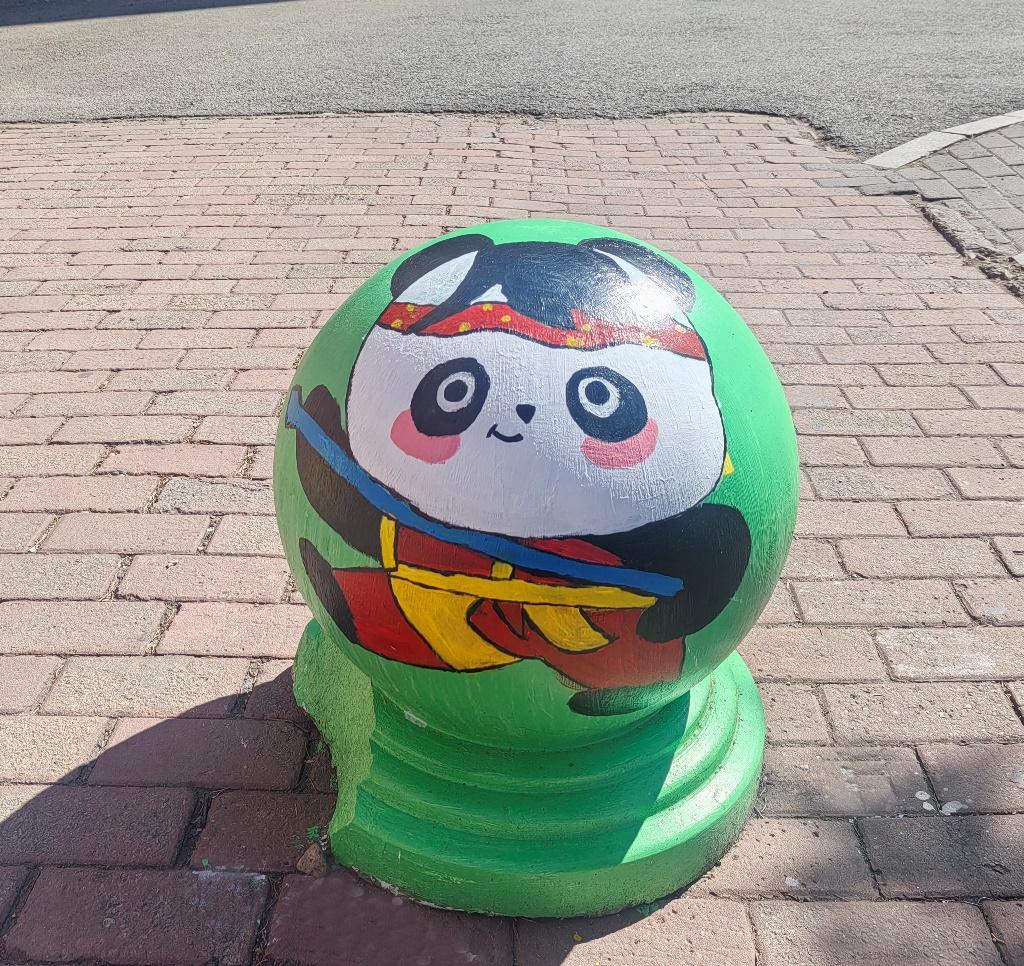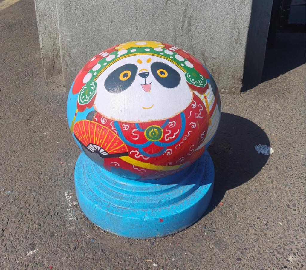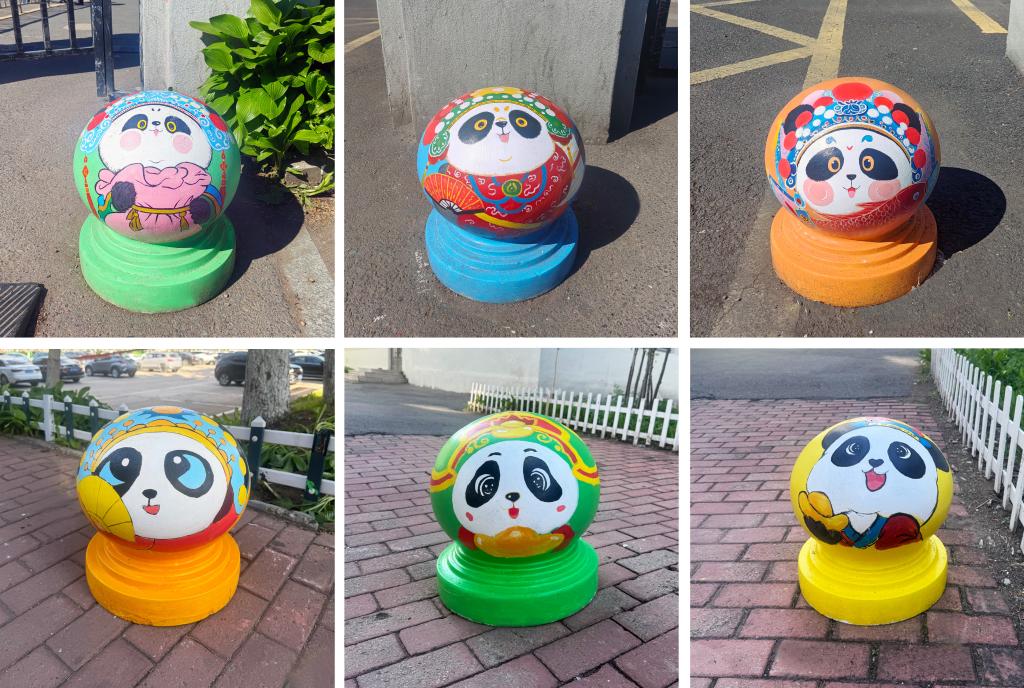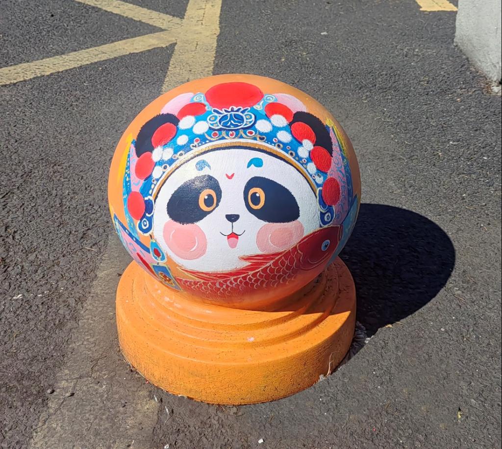 憨態(tài)可掬的熊貓形象躍然于石墩之上,學(xué)生們用畫筆將熊貓的可愛(ài)與靈動(dòng)展現(xiàn)得淋漓盡致。熊貓作為國(guó)寶,深受中國(guó)人民的喜愛(ài),是民族情感的重要寄托。它喚起了人們對(duì)國(guó)家和民族的熱愛(ài)之情,增強(qiáng)了民族自豪感和凝聚力,讓人們?cè)谖幕J(rèn)同和情感共鳴中緊密相連。熊貓的形象承載著深厚的文化底蘊(yùn),如今以手繪的形式裝點(diǎn)校園,讓同學(xué)們?cè)谌粘W(xué)習(xí)生活中,便能感受到傳統(tǒng)文化的親切與美好。