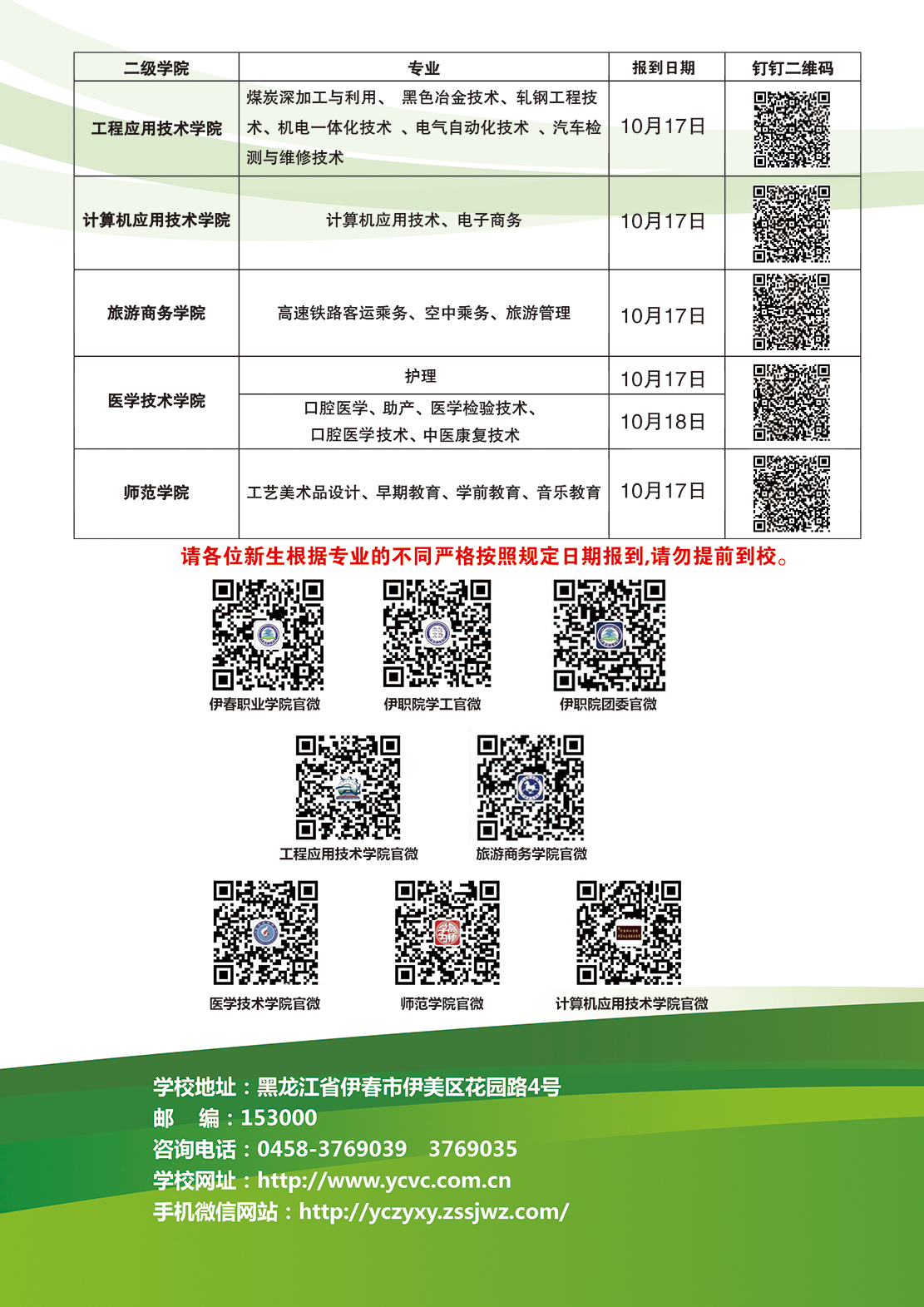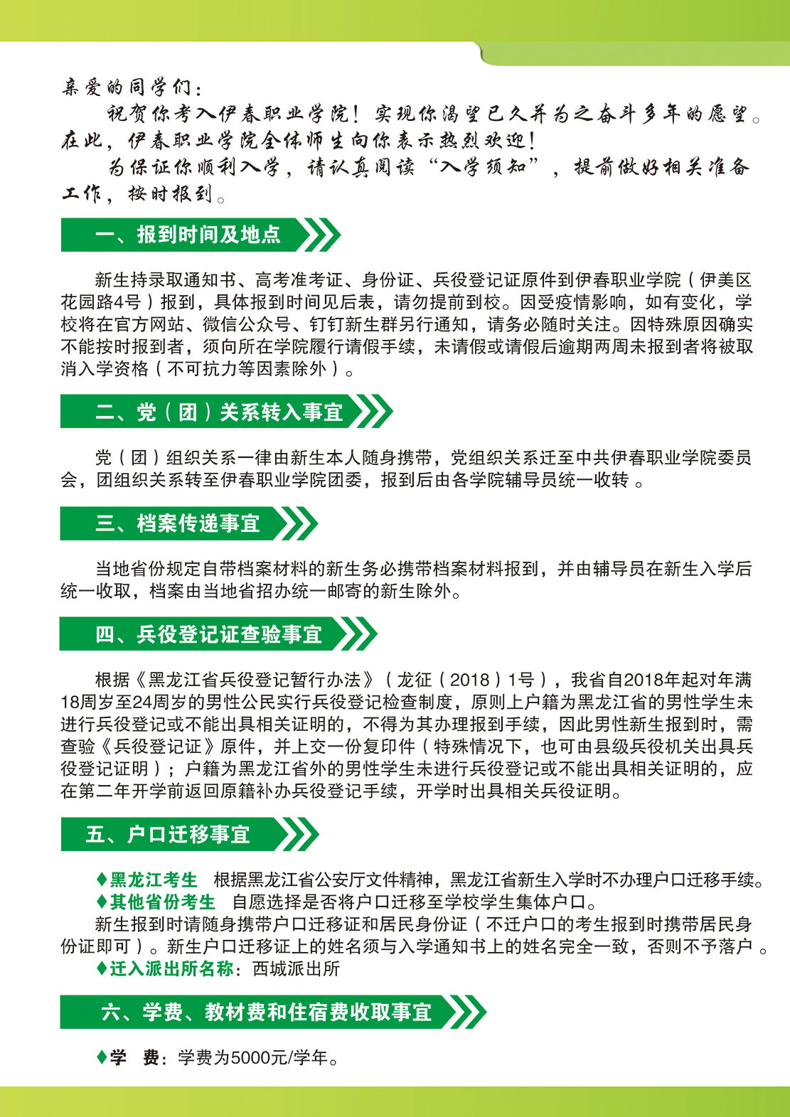 伊春職業(yè)學(xué)院2020級新生入學(xué)須知(高中起點(diǎn))