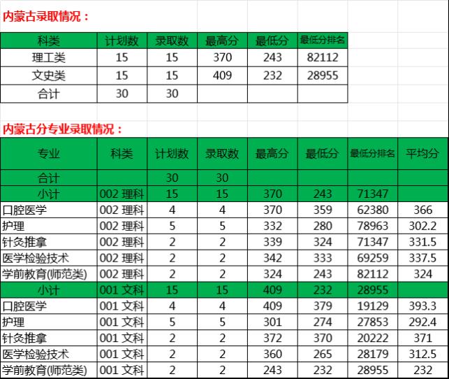 2024年內(nèi)蒙古自治區(qū)錄取情況