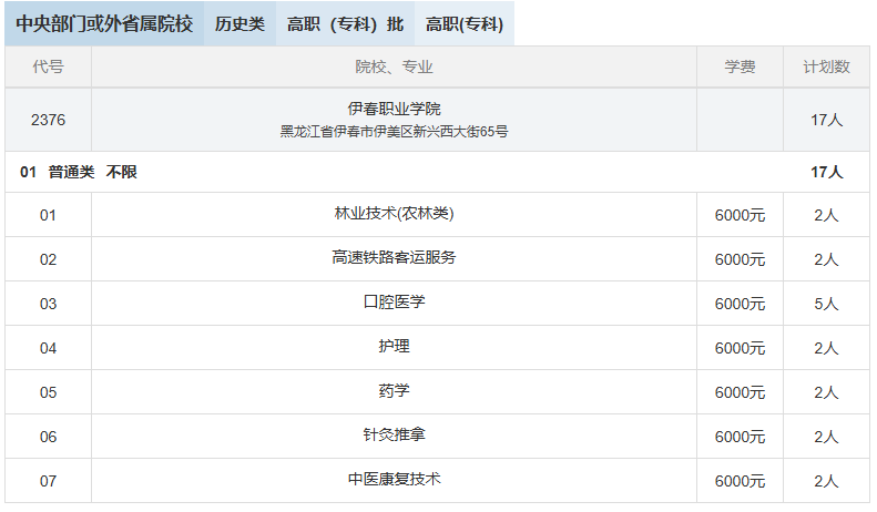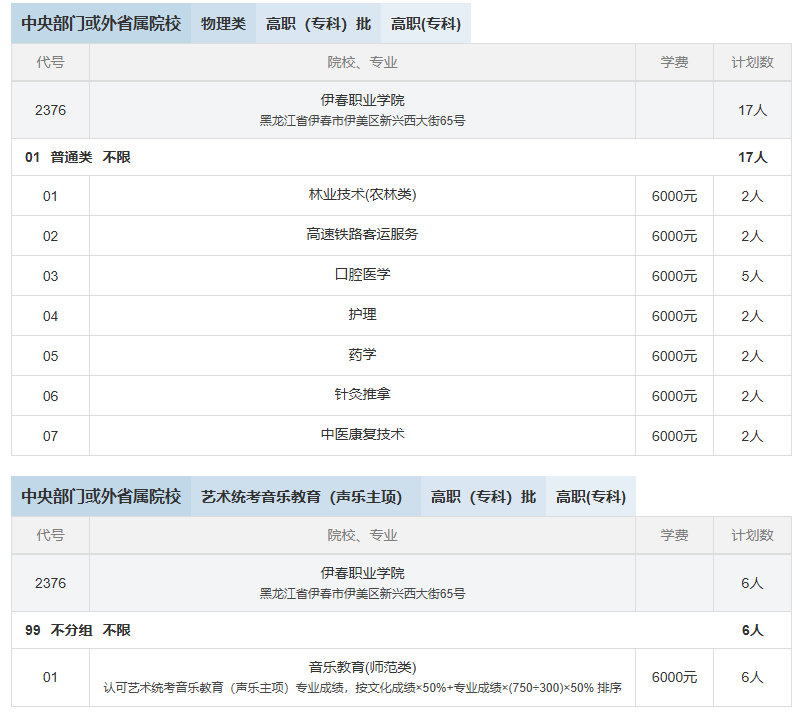 伊春職業(yè)學(xué)院2025年云南省招生計(jì)劃
