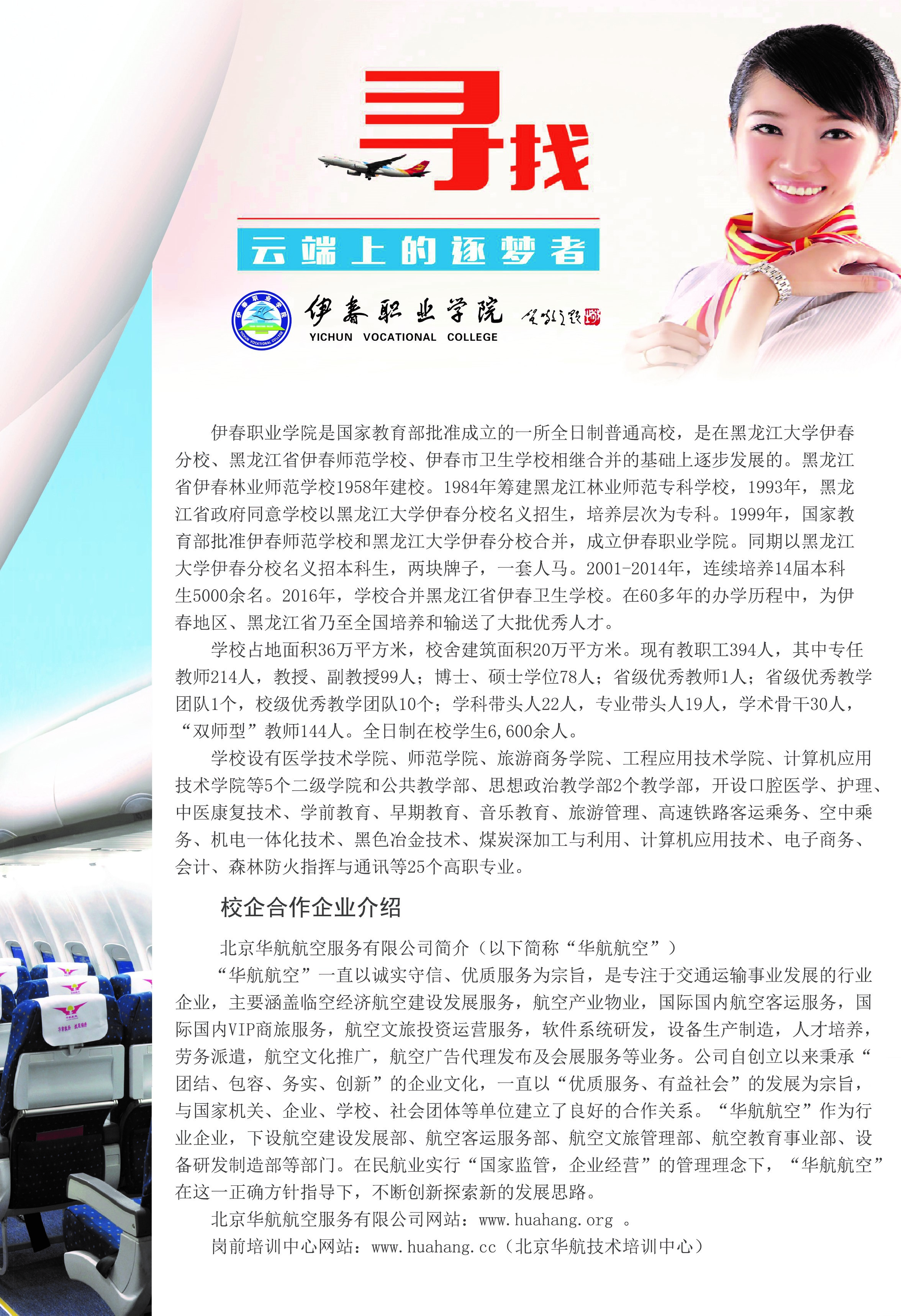 伊春職業(yè)學(xué)院-空中乘務(wù)-北京華航航空-校企合作招生簡(jiǎn)章