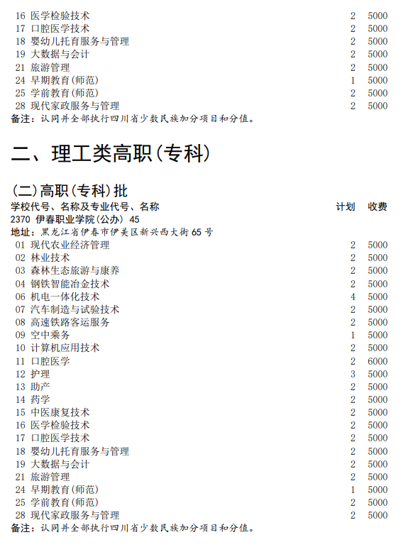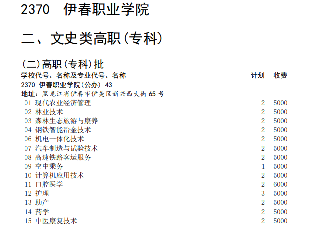 伊春職業(yè)學(xué)院2023年四川省招生計劃