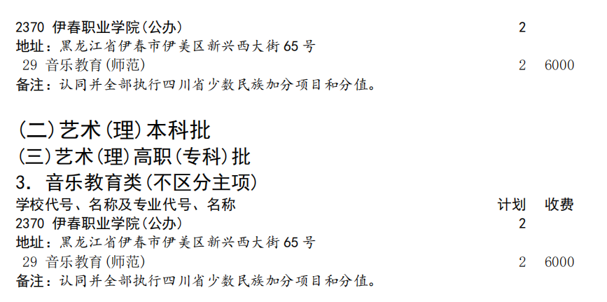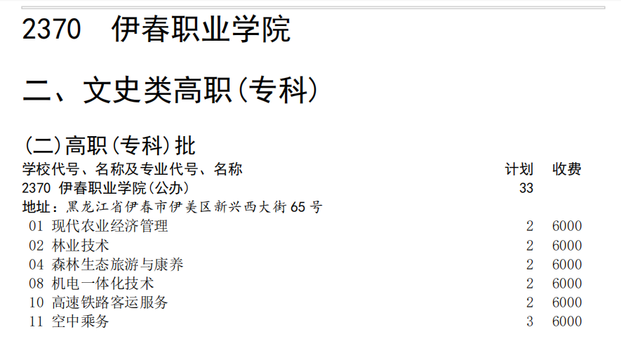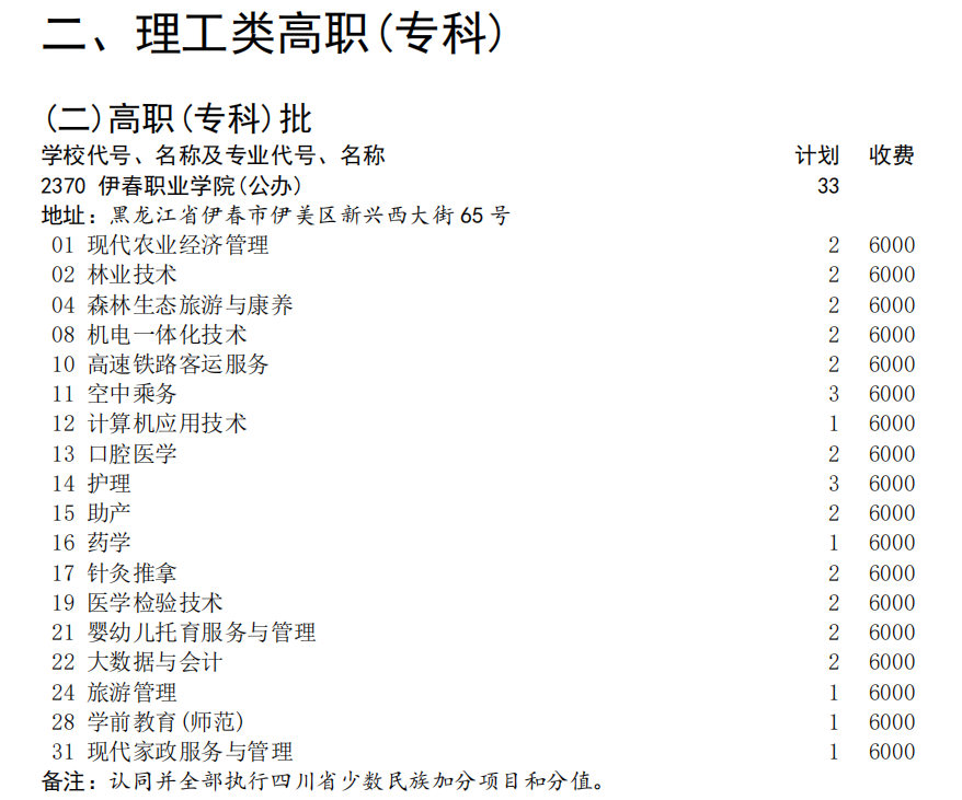 伊春職業(yè)學(xué)院2024年四川省招生計劃