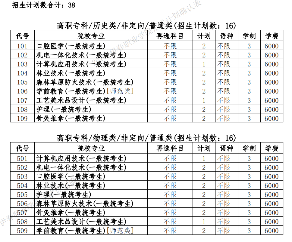 伊春職業(yè)學(xué)院2024年貴州省招生計(jì)劃