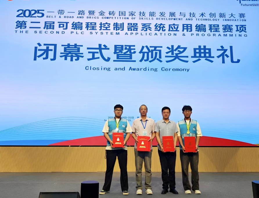 近日,2025“一帶一路”暨金磚國家技能發(fā)展與技術(shù)創(chuàng)新大賽第二屆可編程控制器系統(tǒng)應(yīng)用編程賽項在黔西南民族職業(yè)學院舉行。我院選派的兩組選手分獲一等獎和二等獎。