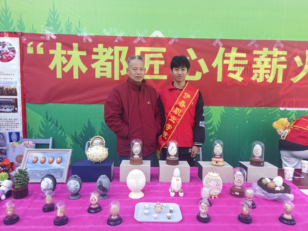 活動(dòng)現(xiàn)場(chǎng)設(shè)在學(xué)生服務(wù)中心廣場(chǎng),氛圍熱烈而鮮活。我校非遺傳承基地精心組織了伊春本土多項(xiàng)國(guó)家級(jí)、省級(jí)非遺項(xiàng)目參展,包括以“林都文化”為特色的木雕技藝、展現(xiàn)林區(qū)傳統(tǒng)智慧的樺樹(shù)皮制作技藝等。每一項(xiàng)非遺項(xiàng)目都設(shè)有專屬傳承工作室展區(qū),非遺傳承人親自介紹講解,通過(guò)“實(shí)物展示+技藝演示+現(xiàn)場(chǎng)教學(xué)”的模式,讓師生近距離感受非遺的獨(dú)特魅力。師范學(xué)院藝術(shù)教研室教師還結(jié)合專業(yè)教學(xué),現(xiàn)場(chǎng)為學(xué)生講解非遺技藝的藝術(shù)價(jià)值與傳承意義,引導(dǎo)大家從專業(yè)視角理解非遺文化,引導(dǎo)學(xué)生積極加入我校傳承工作室,在親手觸摸非遺技藝、挖掘傳統(tǒng)故事的過(guò)程中,既能解鎖木雕、蛋雕等實(shí)用技能,也能為文化傳承注入青春創(chuàng)意,讓個(gè)人成長(zhǎng)與文化延續(xù)同頻共振。