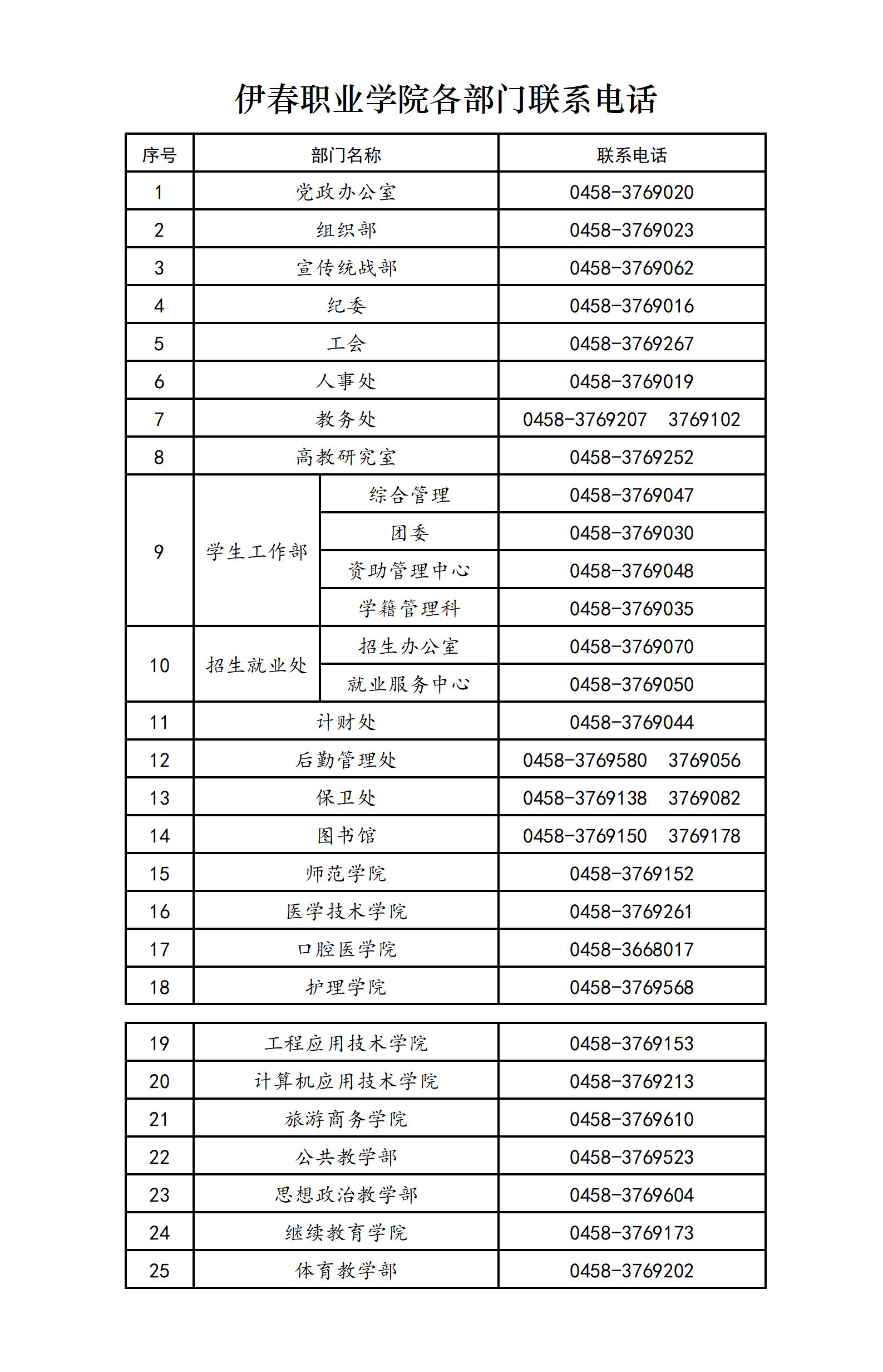 伊春職業(yè)學(xué)院各部門聯(lián)系電話