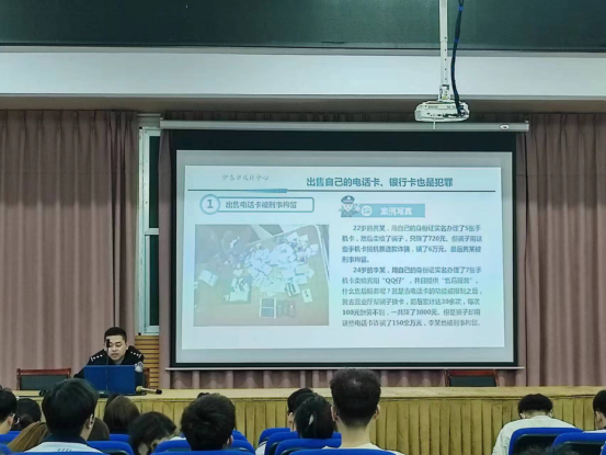 伊春市公安局反詐中心李繼鵬警官通過大量真實案例,以案說法,以生動的語言描述了各種案發(fā)語境,巧妙地利用學(xué)校生活場景向同學(xué)們展現(xiàn)了各式各樣的電信詐騙手段,著重對“網(wǎng)購?fù)丝?/span>”“刷單返利”“冒充熟人”“殺豬盤”等當前校園高發(fā)詐騙類型及特點進行了講解,并給出了有效的應(yīng)對策略,讓同學(xué)們?nèi)媪私庹莆赵p騙分子的慣用伎倆,進而提升同學(xué)們的防詐、反詐意識。同時,他還提醒同學(xué)們下載并用好“國家反詐中心”APP,遇到緊急情況第一時間撥打96110反詐專線電話;要把學(xué)到的反詐騙知識宣傳給周圍的人,讓更多人遠離詐騙。講座生動活潑,有案例、有數(shù)據(jù)、深入淺出地道出當前我們生活的網(wǎng)絡(luò)信息時代,面臨的網(wǎng)絡(luò)詐騙嚴峻形勢及花樣不斷翻新的詐騙手法,并總結(jié)出幾類常見的詐騙犯罪形式及防范措施,提醒學(xué)生們在日常生活中增強安全防范意識,不要接聽陌生人的電話,如遇情況及時報警。