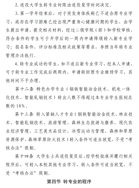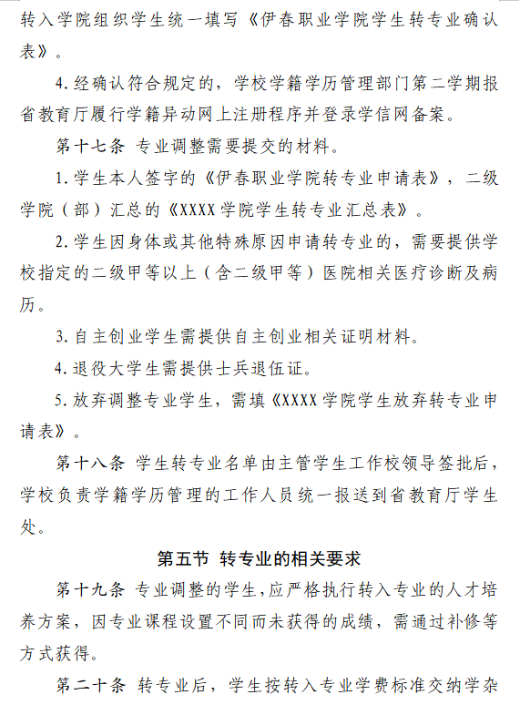 伊春職業(yè)學(xué)院轉(zhuǎn)專業(yè)管理辦法