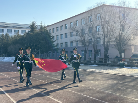 上午七點半,參與人員準備就位?,F(xiàn)場隨著儀仗隊的出現(xiàn)而安靜下來。莊嚴的儀仗隊護衛(wèi)著國旗走入場內。國旗護衛(wèi)隊的隊員們邁著整齊的步伐,護送國旗入場,伴著莊嚴嘹亮的國歌,五星紅旗冉冉升起,全體師生懷著崇敬與喜悅的心情,凝視著迎風飄揚的五星紅旗,心中無比自豪。