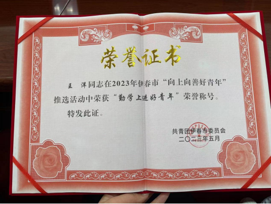計(jì)算機(jī)應(yīng)用技術(shù)學(xué)院團(tuán)總支書記、輔導(dǎo)員王洋榮獲2023年伊春市“勤奮上進(jìn)好青年”榮譽(yù)稱號(hào)。