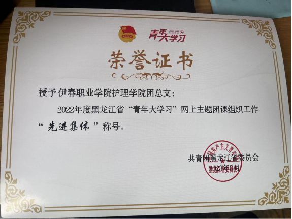 伊春職業(yè)學(xué)院護(hù)理學(xué)院團(tuán)總支榮獲2022年度黑龍江省“青年大學(xué)習(xí)”網(wǎng)上主題團(tuán)課組織工作“先進(jìn)集體”稱號(hào)