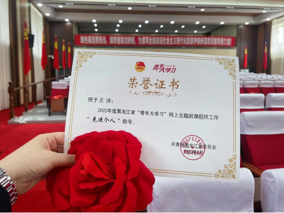 計(jì)算機(jī)應(yīng)用技術(shù)學(xué)院團(tuán)總支書記、輔導(dǎo)員王洋榮獲2022年度黑龍江省“青年大學(xué)習(xí)”網(wǎng)上主題團(tuán)課組織工作“先進(jìn)個(gè)人”稱號(hào)