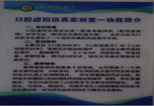 口腔虛擬仿真實(shí)訓(xùn)室有教師機(jī)(配有顯微鏡)和學(xué)生機(jī)(配有仿頭模和顯示器),該實(shí)訓(xùn)室為口腔醫(yī)學(xué)生提供了一個(gè)虛擬仿真的實(shí)踐操作環(huán)境。